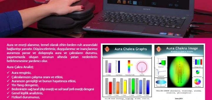 20.12.2015 Tarihinde Saat 13:00 ‘da Mersin Bioenerji Merkezinde Berna ŞİRİN ile birlikte Aura- Çakra Analizi çalışması yapılacaktır. Aura ve enerji alanımız, temel olarak zihin-beden-ruh arasındaki bağlantıyı yansıtır. Düşüncelerimiz, duygularımız ve inançlarımız auramıza yansır ve dolayısıyla aura ve çakraların durumu, yaşamımızda oluşan sorunun altında yatan nedenlerin belirlenmesine yardımcı olur. Aura-Çakra Analizi; Aura renginiz, Çakralarınızın çalışma oranı ve etkisi, Auranızın genişliği ve bunun hayatınıza etkisi, Yin-Yang dengeniz, Bedeninizin sağ taraf (dişi enerji) ve sol taraf (eril enerji) dengesi Genel kişilik analiziniz, Fiziksel durumunuz, Zihinsel durumunuz, Ruhsal durumunuz, Sağlık analizi ve önerileri Sosyal yaşam analizi ve önerileri Aşk- Sevgi analizi ve...